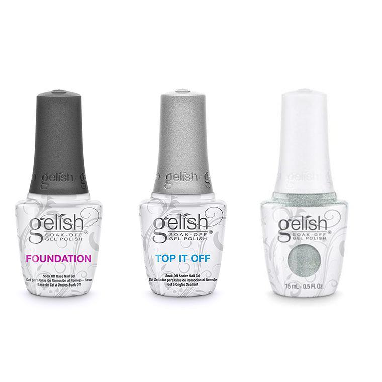 Harmony Gelish Base Coat, Top Coat, and Color Combo. Gelish® Soak-Off Gel Polish applies like polish and cures in a LED lamp in 30 seconds, or 2 minutes in traditional UV lamps. Gelish stays on nails for up to 3 weeks with no chipping or peeling, and soaks completely off in only 10 - 15 minutes. Directions: Gelish® Soak-Off Gel Polish must be cured with LED Light or UV Light system. Apply over Gelish Foundation or Structure Gel. Do NOT apply directly to the natural nail. Must be cured for 30 seconds under LED Light or 2 minutes under UV Light. Apply 2 thin coats and cure between each coat. Seal with Gelish Top IT OFF. Remove with Gelish Artificial Nail Remover.