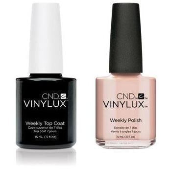 VINYLUX is a breakthrough polish that lasts for 7 days! There is no need for a base coat as it will negate the performance since the adhesives are already in the color coat. The patent pending technology works with natural light to create an enduring, long-lasting polish. While ordinary polishes deteriorate over time, VINYLUX dries naturally to a flawless finish and strengthens its resistance to chip over time. Directions Step 1 - You can pre-treat dry or hard nails with CND Solar Oil cuticle treatment. Step 2 - Apply two thin coats of Vinylux Weekly Polish Step 3 - Finish with one coat of Vinylux Weekly Top Coat for extra durability and shine Ingredients: Butyl Acetate, Ethyl Acetate, Nitrocellulose, Acetyl Tributyl Citrate, Isopropyl Alcohol, Adipic Acid/Neopentyl Glycol/Trimelitic Anhydride Copolymer, Glycidoxypropyl Silsequioxane, Titanium Dioxide, Stearalkonium Bentonite, N-Butyl Alcohol, Styrene/Acrylates Copolymer, Benzophenone-1, Silica, Mica, Tin Oxide, CI 19140 (Yellow 5 Lake), CI 77510 (Ferric Ammonium Ferrocyanide), CI 77266 (Black 2)