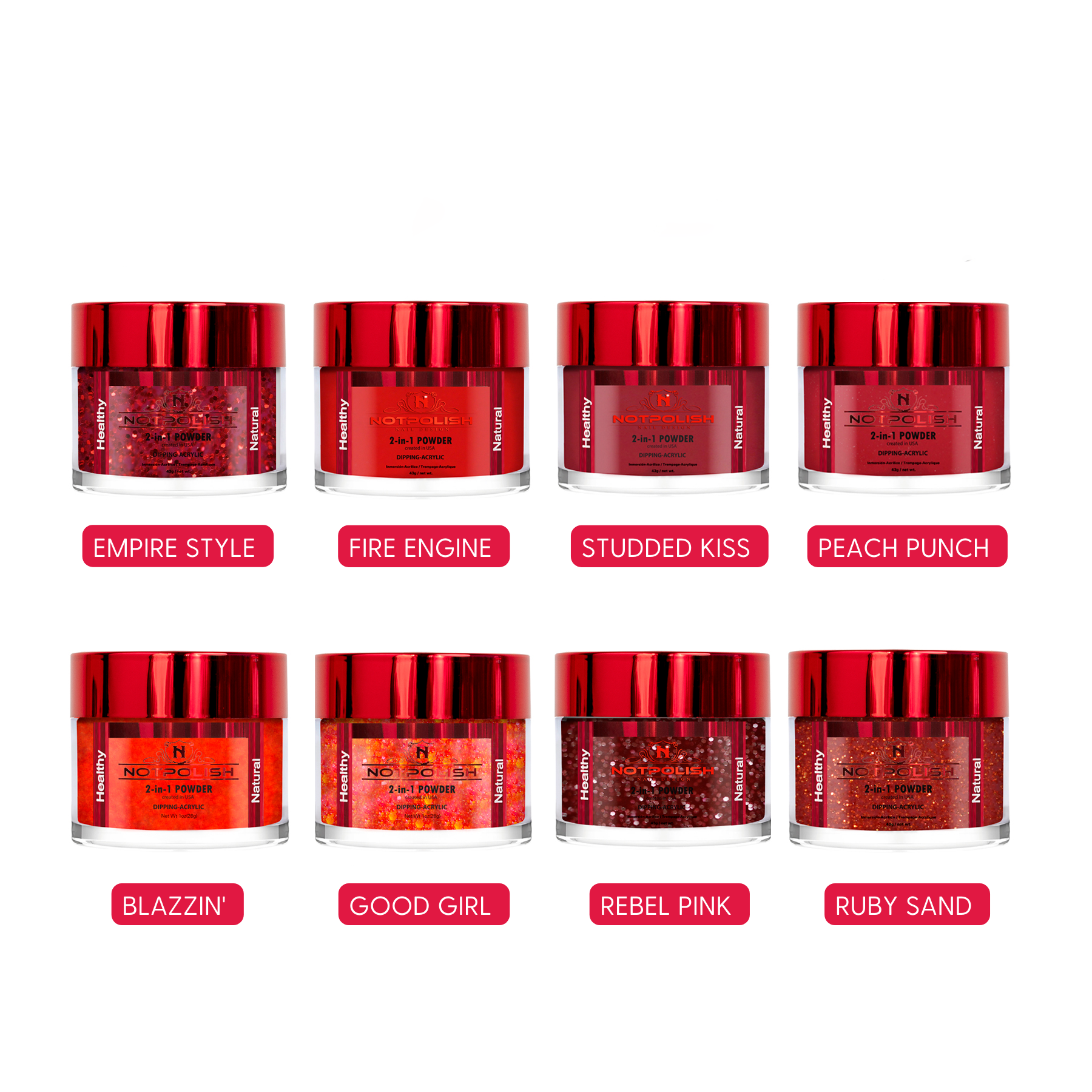 Nothing says #NotPolishBabe more than our signature red color. The Not Polish Babe Bundle features 8 of our favorite reds from our M Collection, OG Collection, and OMG Glitter Collection. The Not Polish Babe Bundle is perfect for the babe who dares to stand out because lets face it, everyone loves a lady in red.***OMG Glitters come in 1oz onlyNot Polish Babes Bundle includes: •Empire Style (M51)•Fire Engine (M59)•Studded Kiss (OG111)•Peach Punch (OG191)•Blazzin' (OMG20)•Good Girl (OMG23)•Rebel Pink (OG169)•Ruby Sand (OG161)