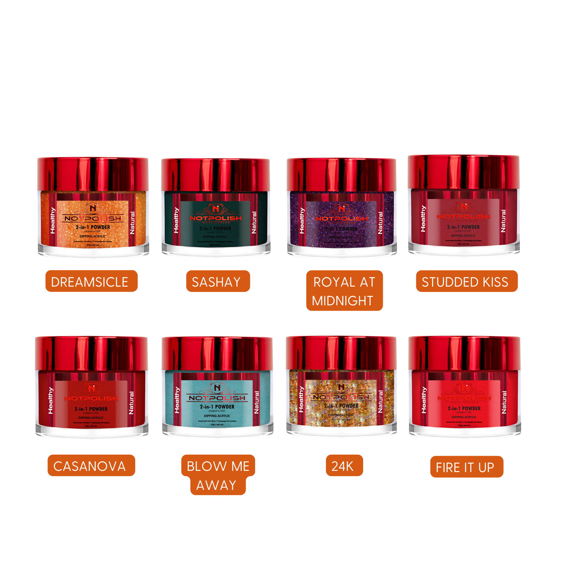 If you're a Not Polish Babe who lives in her fuzzy 2-piece sets and weighted blankets, the Sugar and Spice Bundle is perfect for you. This Bundle features warm and cozy fall/winter inspired colors from our M Collection, OG Collection, Candy Coated Collection, and OMG Collection. Treat yourself to a pumpkin spiced latte and a rom-com while you do your nails because you deserve it;)***OMG Glitters come in 1oz onlySugar and Spice Bundle includes:•Dreamsicle (M04)•Sashay (M56)•Royal at Midnight (M63)•Studded Kiss (OG111)•Casanova (OG128)•Blow Me Away (CC1007)•24K (OMG33)•Fire it Up (OG120)