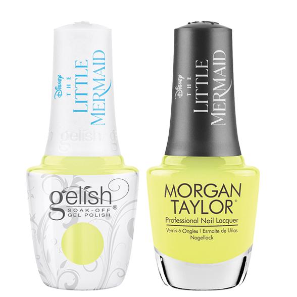 All Sands On Deck – Yellow PearlGelish and Morgan Taylor are going on an undersea adventure this summer with the Splash of Color collection for Summer 2023. The Splash of Color collection is inspired by Disney's The Little Mermaid. This collection features six gorgeous shades perfect for the summer season and the warm days ahead. This collection has so much to offer in terms of vibrant hues and fun finishes. From soft pearls to decadent glitters, there is a color perfect for everyone’s summertime manicures and pedicures.Harmony Gelish and Morgan Taylor combo pair. Get the perfect match with your favorite Gelish shades and their matching Morgan Taylor lacquer counterparts.