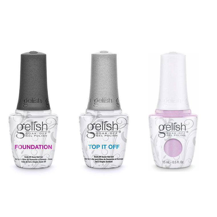 Harmony Gelish Base Coat, Top Coat, and Color Combo. Gelish® Soak-Off Gel Polish applies like polish and cures in a LED lamp in 30 seconds, or 2 minutes in traditional UV lamps. Gelish stays on nails for up to 3 weeks with no chipping or peeling, and soaks completely off in only 10 - 15 minutes. Directions: Gelish® Soak-Off Gel Polish must be cured with LED Light or UV Light system. Apply over Gelish Foundation or Structure Gel. Do NOT apply directly to the natural nail. Must be cured for 30 seconds under LED Light or 2 minutes under UV Light. Apply 2 thin coats and cure between each coat. Seal with Gelish Top IT OFF. Remove with Gelish Artificial Nail Remover.
