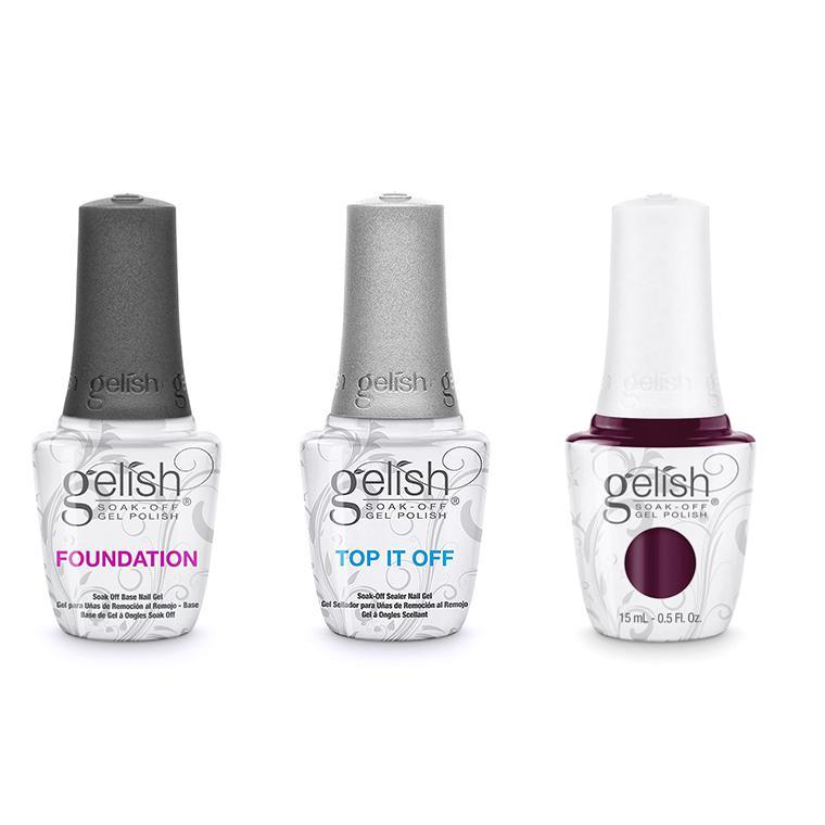 Harmony Gelish Base Coat, Top Coat, and Color Combo. Gelish® Soak-Off Gel Polish applies like polish and cures in a LED lamp in 30 seconds, or 2 minutes in traditional UV lamps. Gelish stays on nails for up to 3 weeks with no chipping or peeling, and soaks completely off in only 10 - 15 minutes. Directions: Gelish® Soak-Off Gel Polish must be cured with LED Light or UV Light system. Apply over Gelish Foundation or Structure Gel. Do NOT apply directly to the natural nail. Must be cured for 30 seconds under LED Light or 2 minutes under UV Light. Apply 2 thin coats and cure between each coat. Seal with Gelish Top IT OFF. Remove with Gelish Artificial Nail Remover.