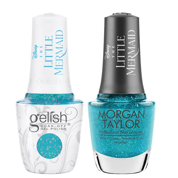 Ride The Wave – Aqua Teal GlitterGelish and Morgan Taylor are going on an undersea adventure this summer with the Splash of Color collection for Summer 2023. The Splash of Color collection is inspired by Disney's The Little Mermaid. This collection features six gorgeous shades perfect for the summer season and the warm days ahead. This collection has so much to offer in terms of vibrant hues and fun finishes. From soft pearls to decadent glitters, there is a color perfect for everyone’s summertime manicures and pedicures.Harmony Gelish and Morgan Taylor combo pair. Get the perfect match with your favorite Gelish shades and their matching Morgan Taylor lacquer counterparts.