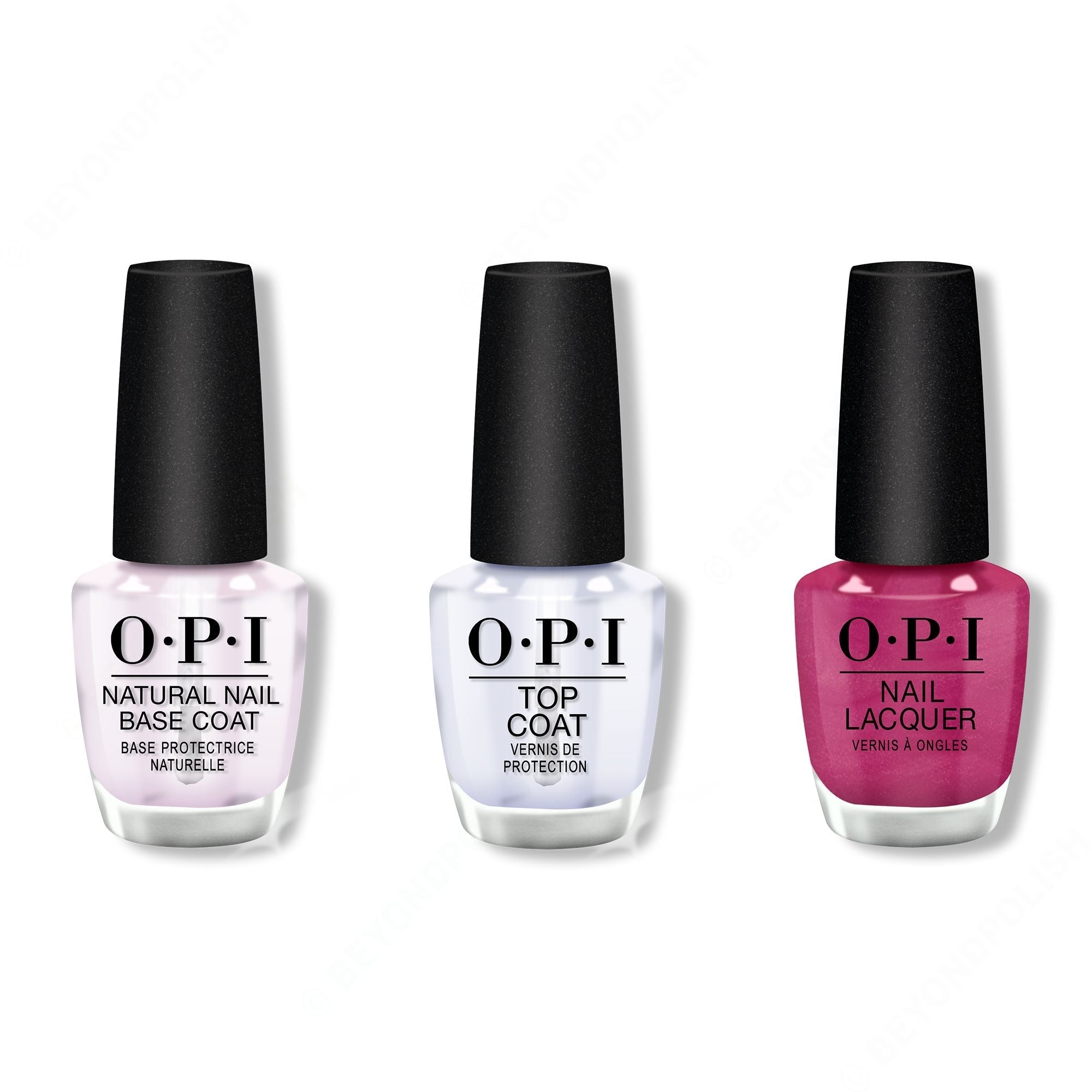 Your favorite OPI Nail Lacquer colors paired with OPI’s Nail Lacquer Top Coat and Natural Base Coat. OPI is renowned globally for its Nail Lacquers - a brilliant, chip-resistant, professional formula available in over 200 unique shades. OPI Lacquer is more durable with a fast-drying formula that provides up to 7 days of wear. With clever names that customers look forward to with each new Collection, OPI Nail Lacquers are beloved around the world, and trusted by professionals. All OPI lacquers are DBP, Toluene and Formaldehyde free.