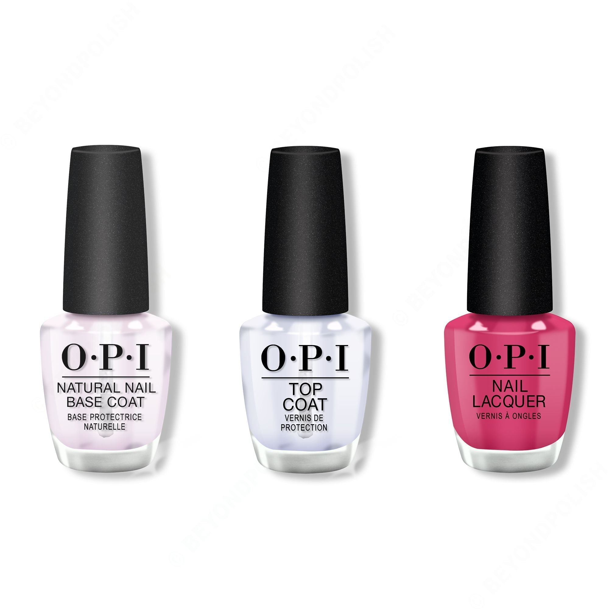 Your favorite OPI Nail Lacquer colors paired with OPI’s Nail Lacquer Top Coat and Natural Base Coat. OPI is renowned globally for its Nail Lacquers - a brilliant, chip-resistant, professional formula available in over 200 unique shades. OPI Lacquer is more durable with a fast-drying formula that provides up to 7 days of wear. With clever names that customers look forward to with each new Collection, OPI Nail Lacquers are beloved around the world, and trusted by professionals. All OPI lacquers are DBP, Toluene and Formaldehyde free.