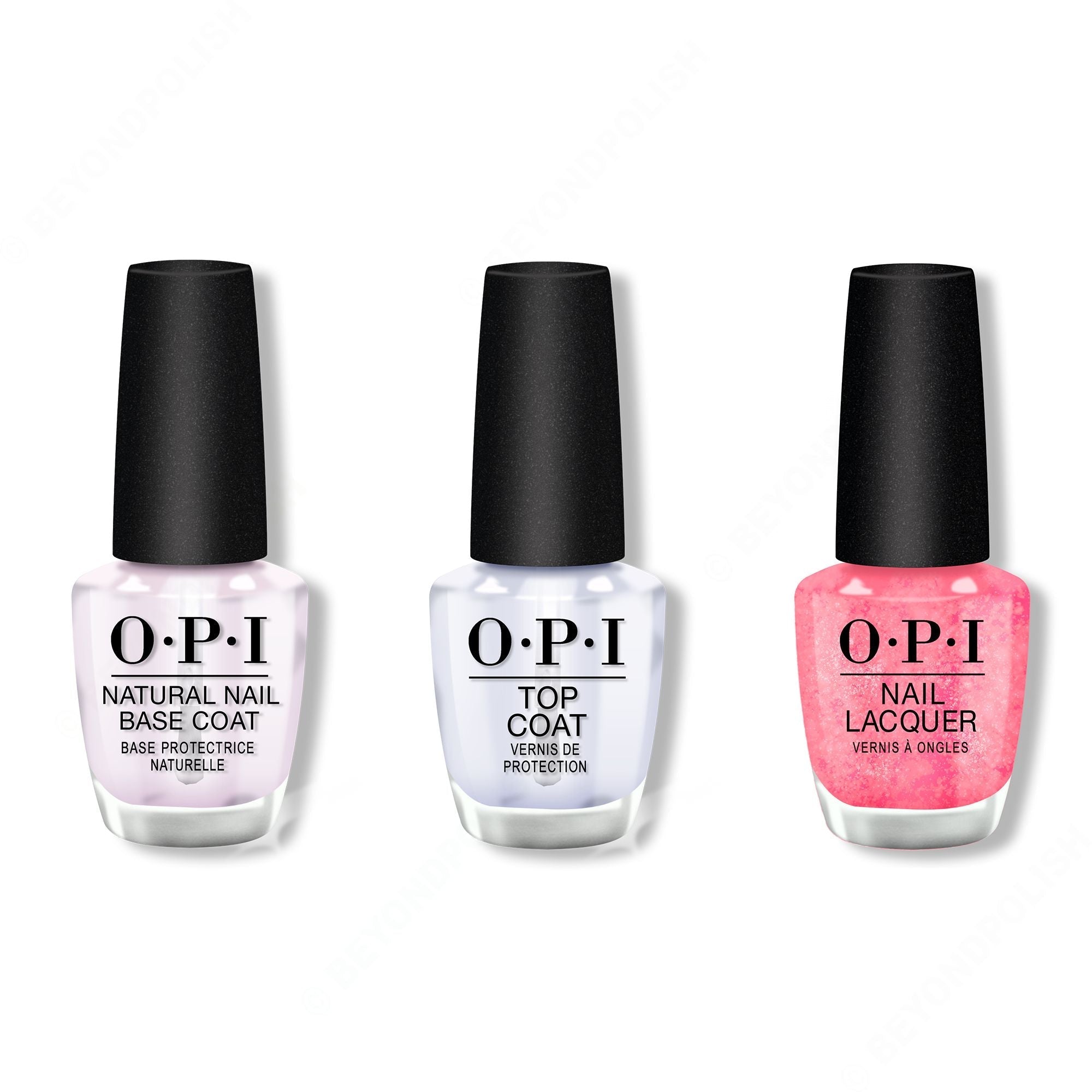 Your favorite OPI Nail Lacquer colors paired with OPI’s Nail Lacquer Top Coat and Natural Base Coat. OPI is renowned globally for its Nail Lacquers - a brilliant, chip-resistant, professional formula available in over 200 unique shades. OPI Lacquer is more durable with a fast-drying formula that provides up to 7 days of wear. With clever names that customers look forward to with each new Collection, OPI Nail Lacquers are beloved around the world, and trusted by professionals. All OPI lacquers are DBP, Toluene and Formaldehyde free.