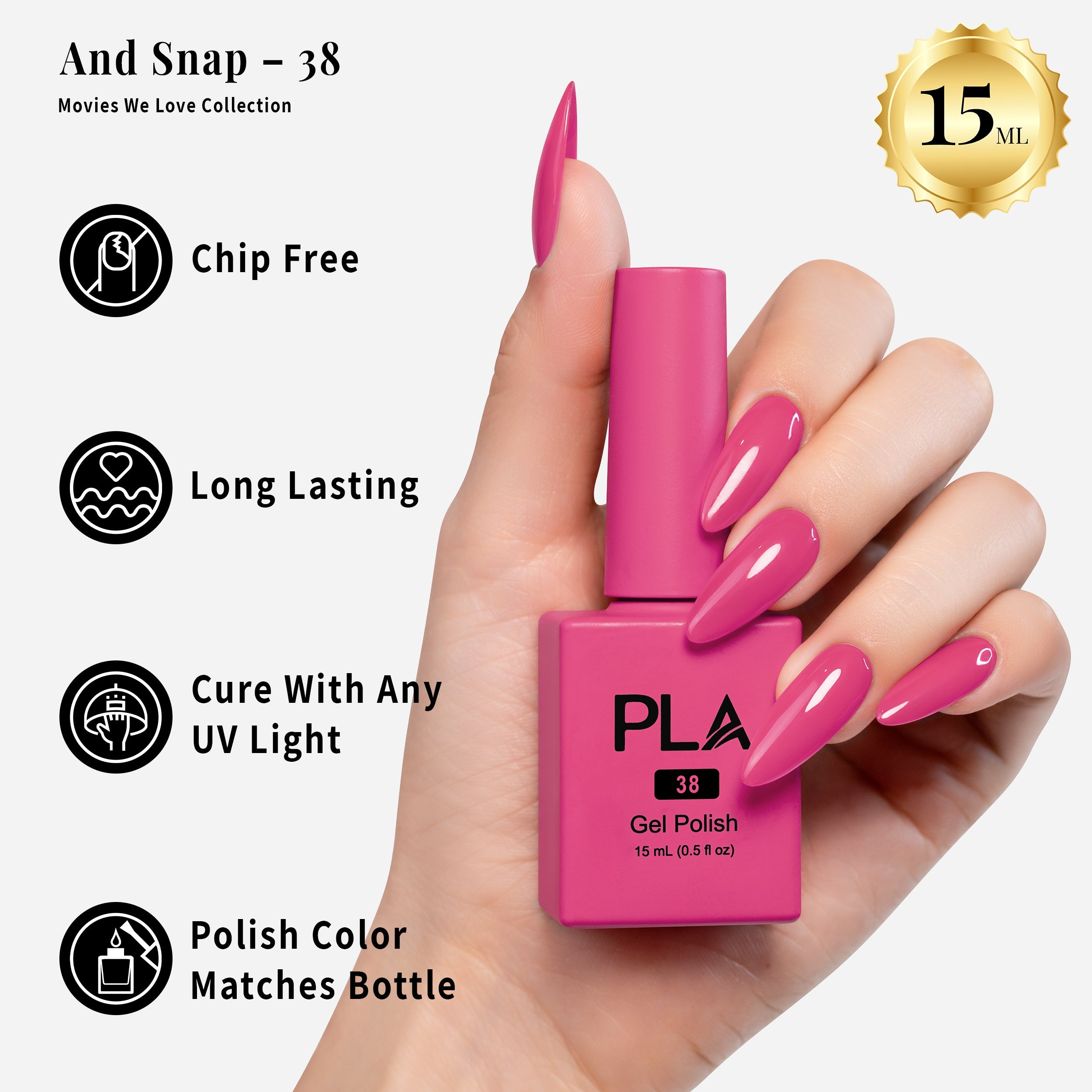 The Movies We Love Nail Collection includes vivid, glossy pinks that can be used for a professional 3-step gel system. After applying the base coat, cure the gel polish under an LED lamp, finishing with the top coat.