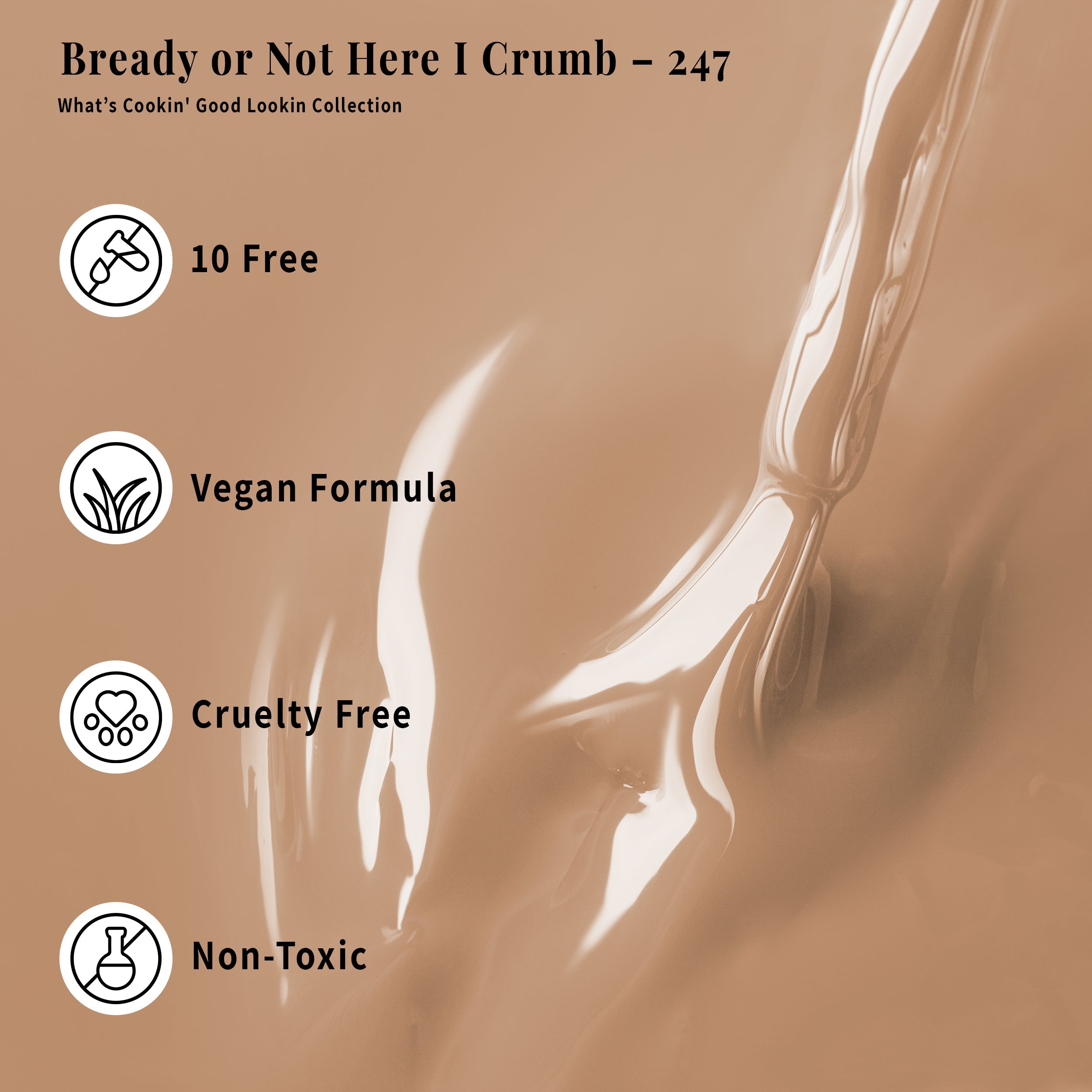 The What's Cookin, Good Lookin Collection is full of neutral shades that will add a sophisticated, elegant touch to any look and can be used for a professional 3-step gel system. After applying the base coat, cure the gel polish under an LED lamp, finishing with the top coat.