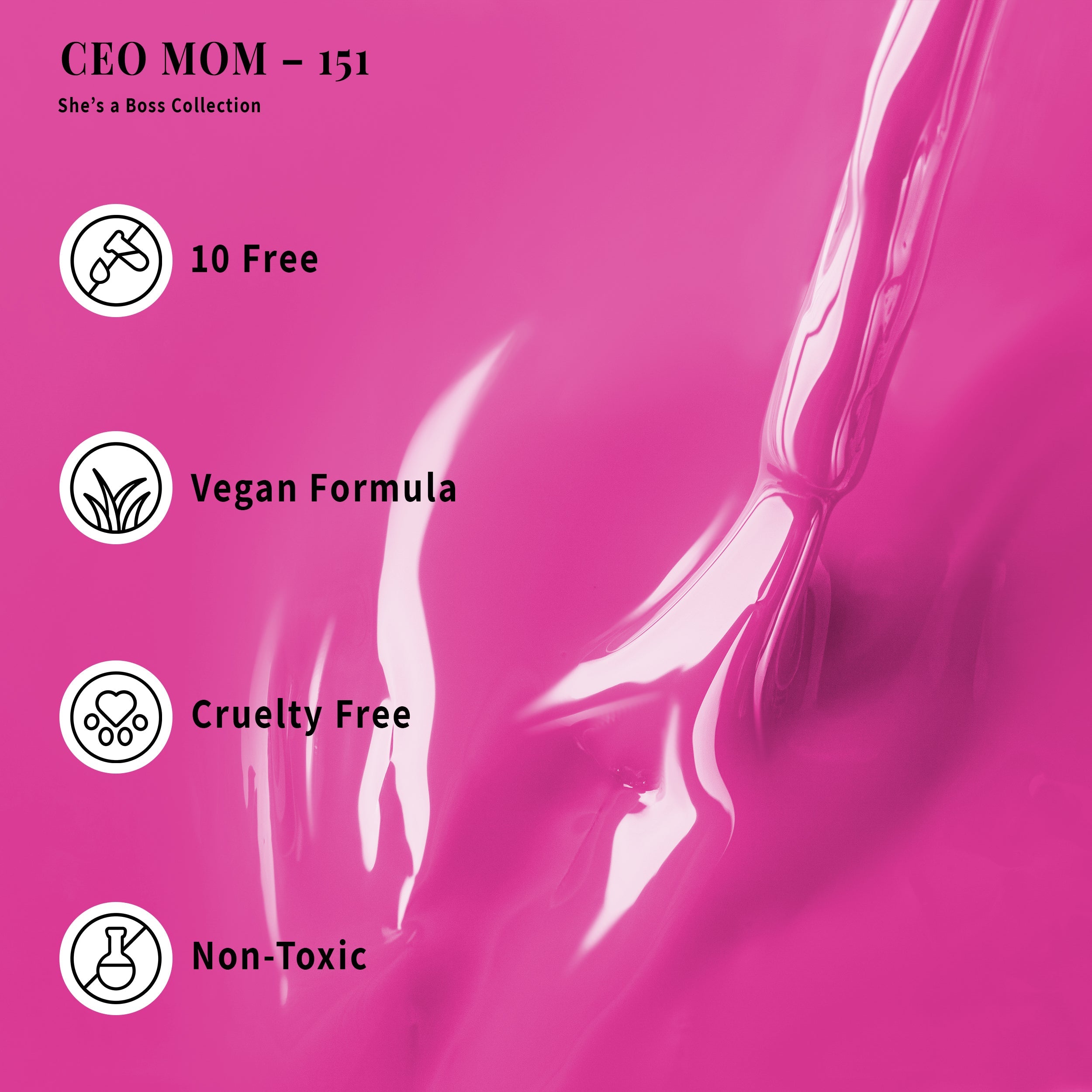 The She's A Boss Collection includes classy, sophisticated shades that can be used for a professional 3-step gel system. After applying the base coat, cure the gel polish under an LED lamp, finishing with the top coat.