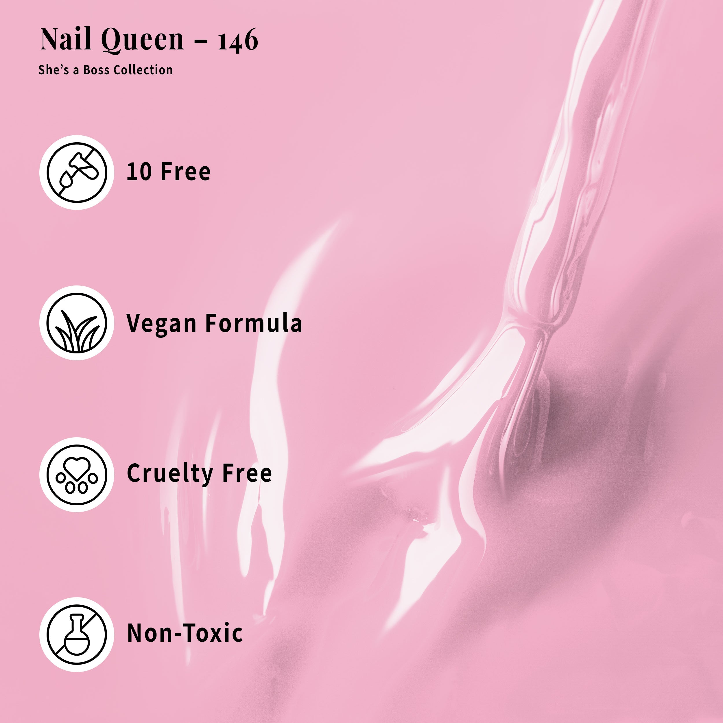 The She's A Boss Collection includes classy, sophisticated shades that can be used for a professional 3-step gel system. After applying the base coat, cure the gel polish under an LED lamp, finishing with the top coat.