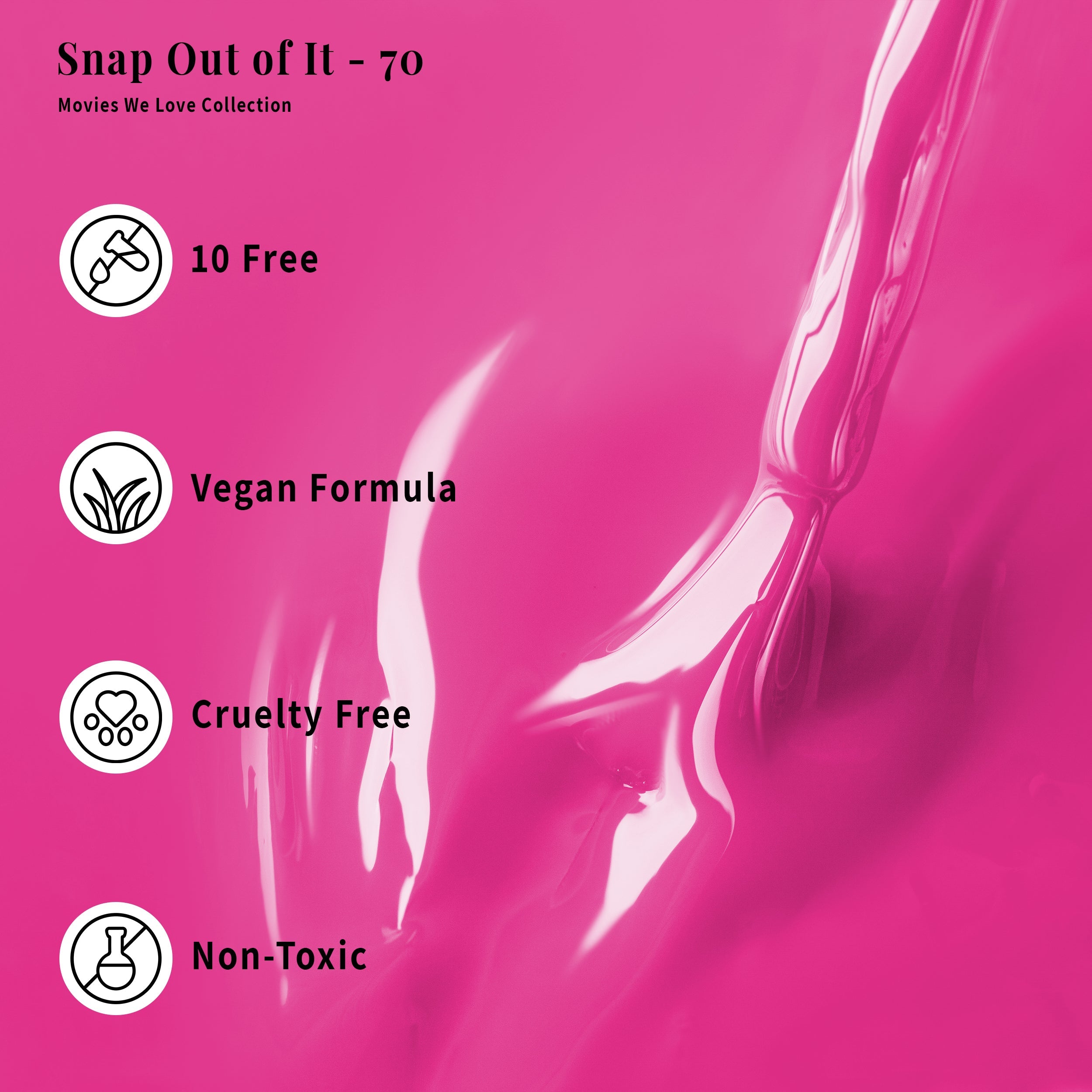 The Movies We Love Nail Collection includes vivid, glossy pinks that can be used for a professional 3-step gel system. After applying the base coat, cure the gel polish under an LED lamp, finishing with the top coat.