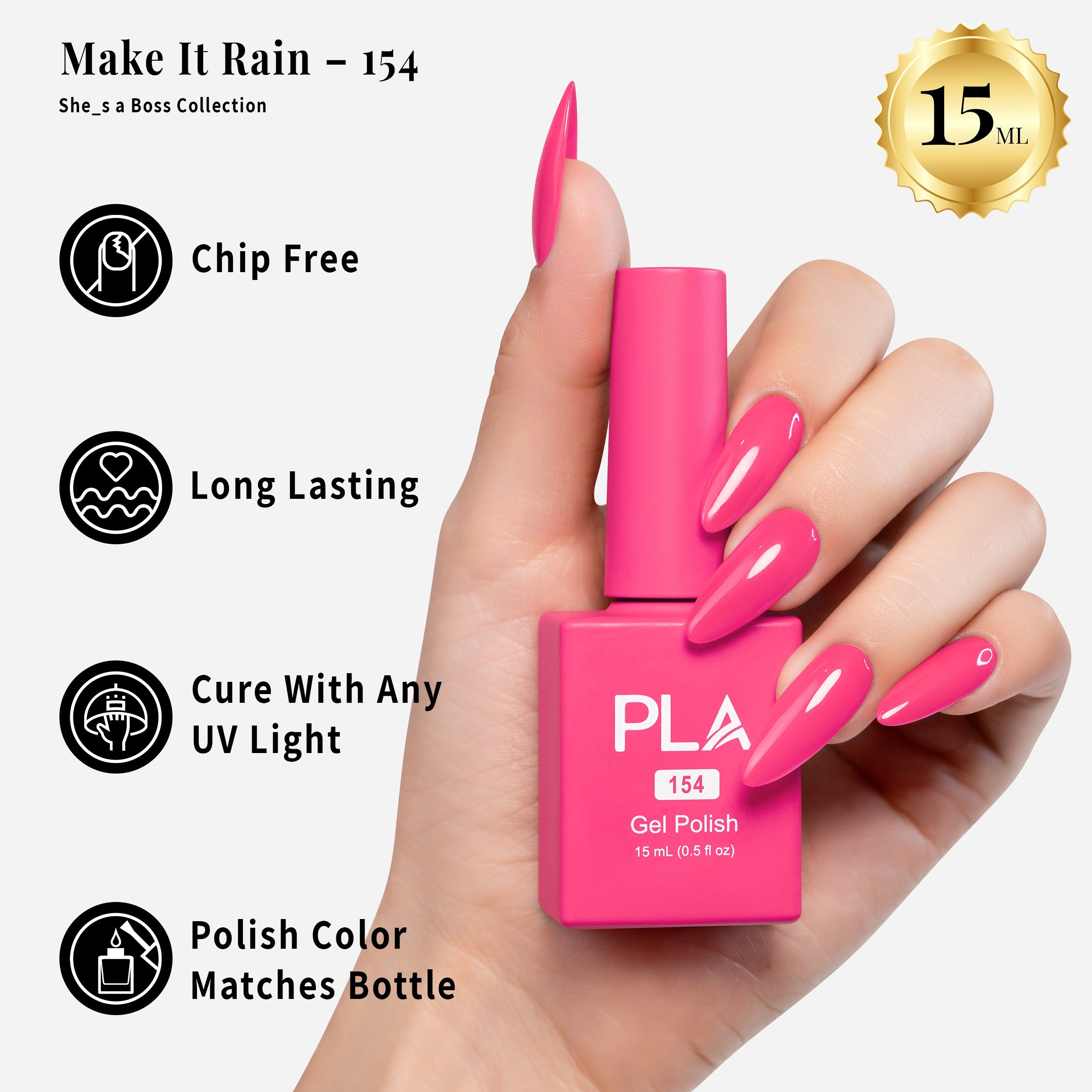 The She's A Boss Collection includes classy, sophisticated shades that can be used for a professional 3-step gel system. After applying the base coat, cure the gel polish under an LED lamp, finishing with the top coat.
