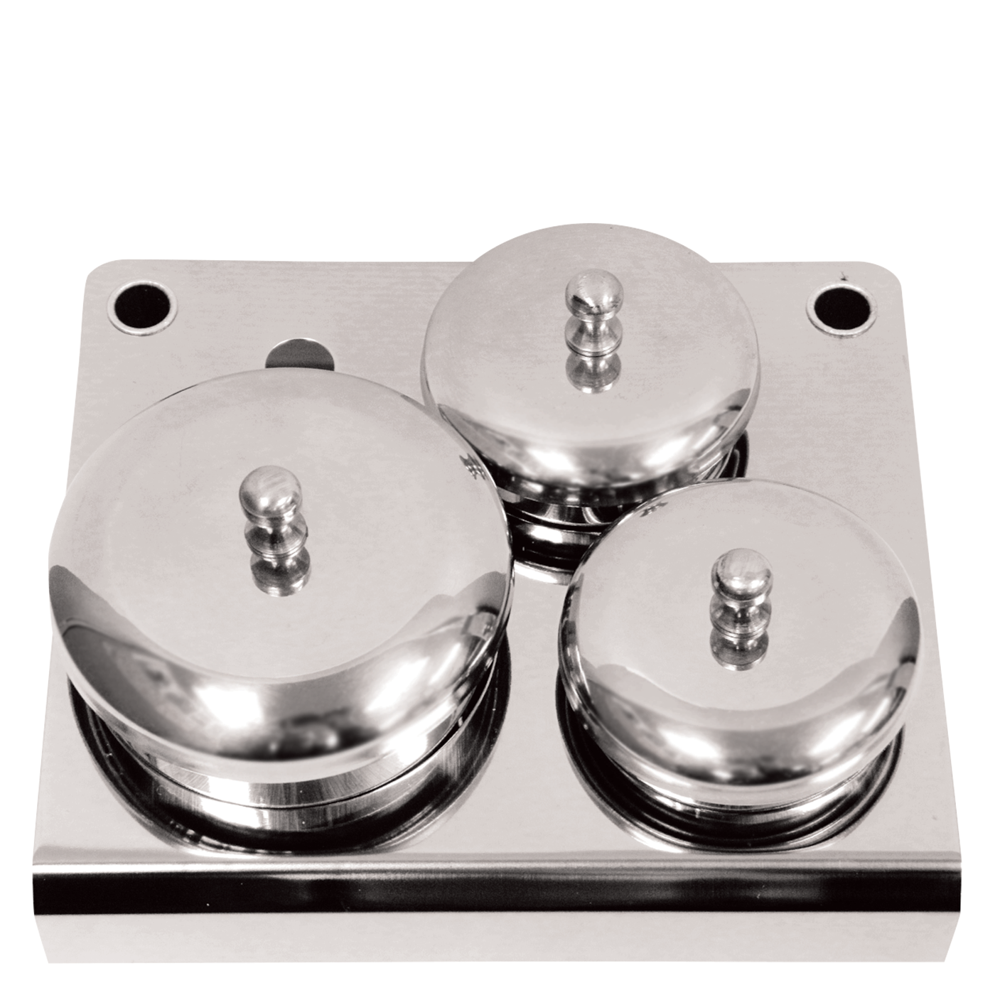 Stainless steel set is perfect for holding powders and liquids, and keeping supplies organized.