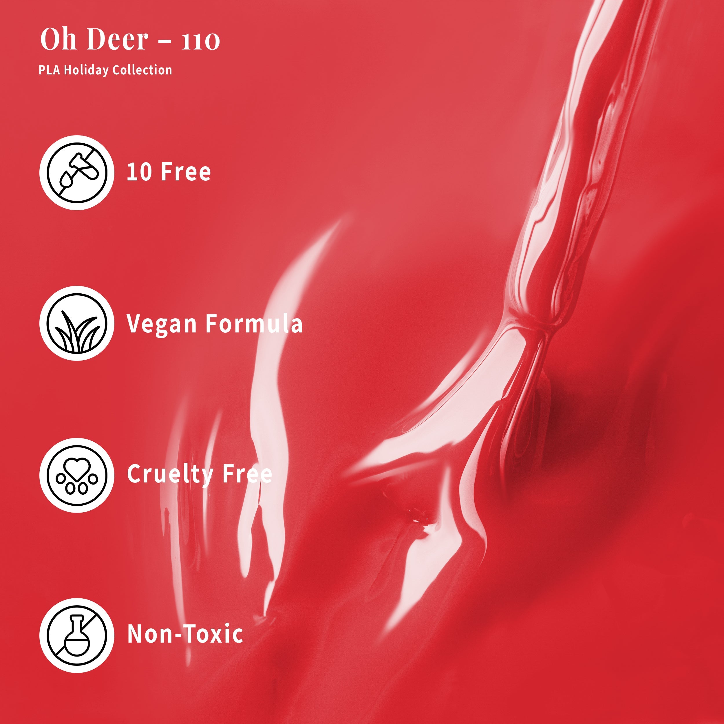 All PLA Nail Products are 10-free! This means that PLA Nail Products do not contain formaldehyde, dibutyl phthalate, or toluene, also known as the "Toxic Trio". They are also free of formaldehyde resin, camphor, parabens, xylene, phthalates, fragrances, or animal ingredients.