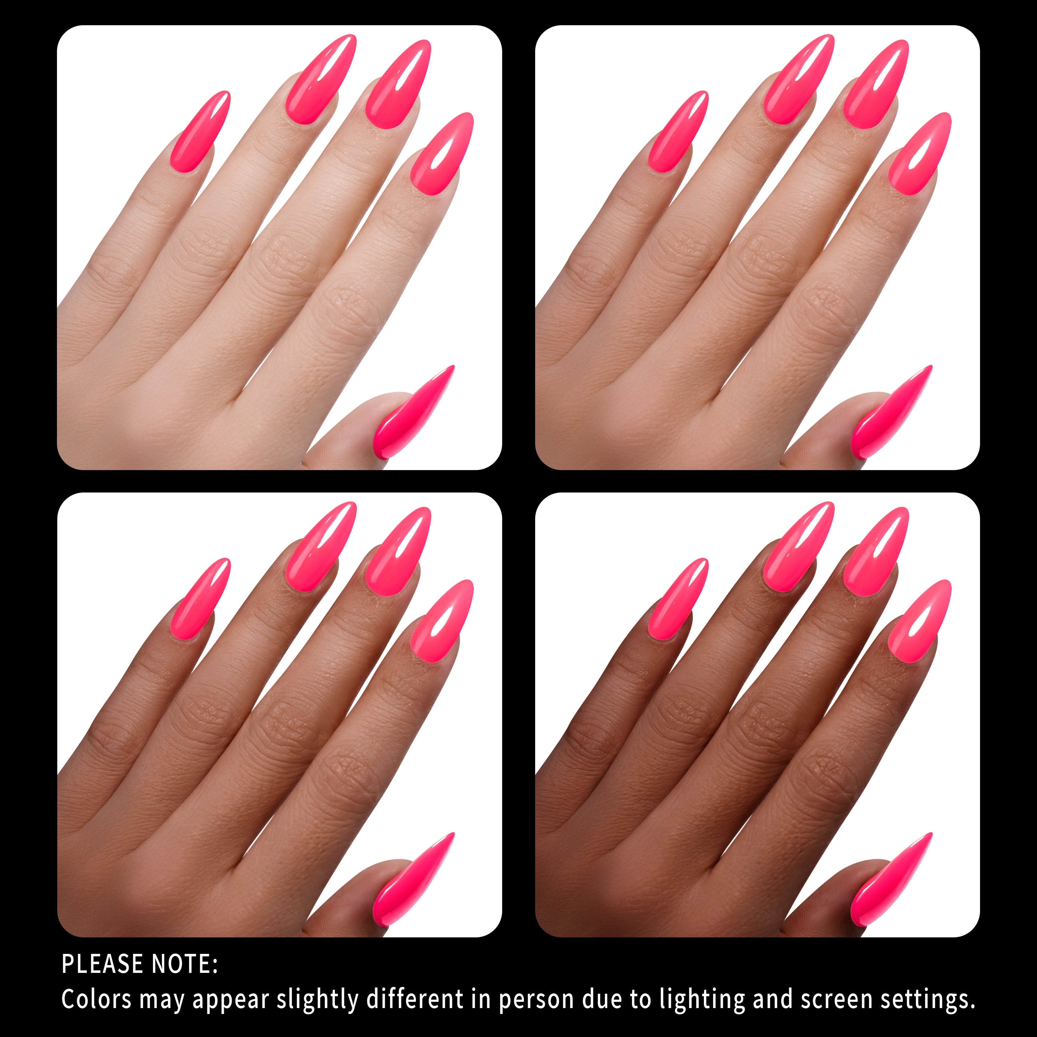 The What Happens in Vegas Collection is full of fun, bright colors that are perfect for a night out on the town and can be used for a professional 3-step gel system. After applying the base coat, cure the gel polish under an LED lamp, finishing with the top coat.