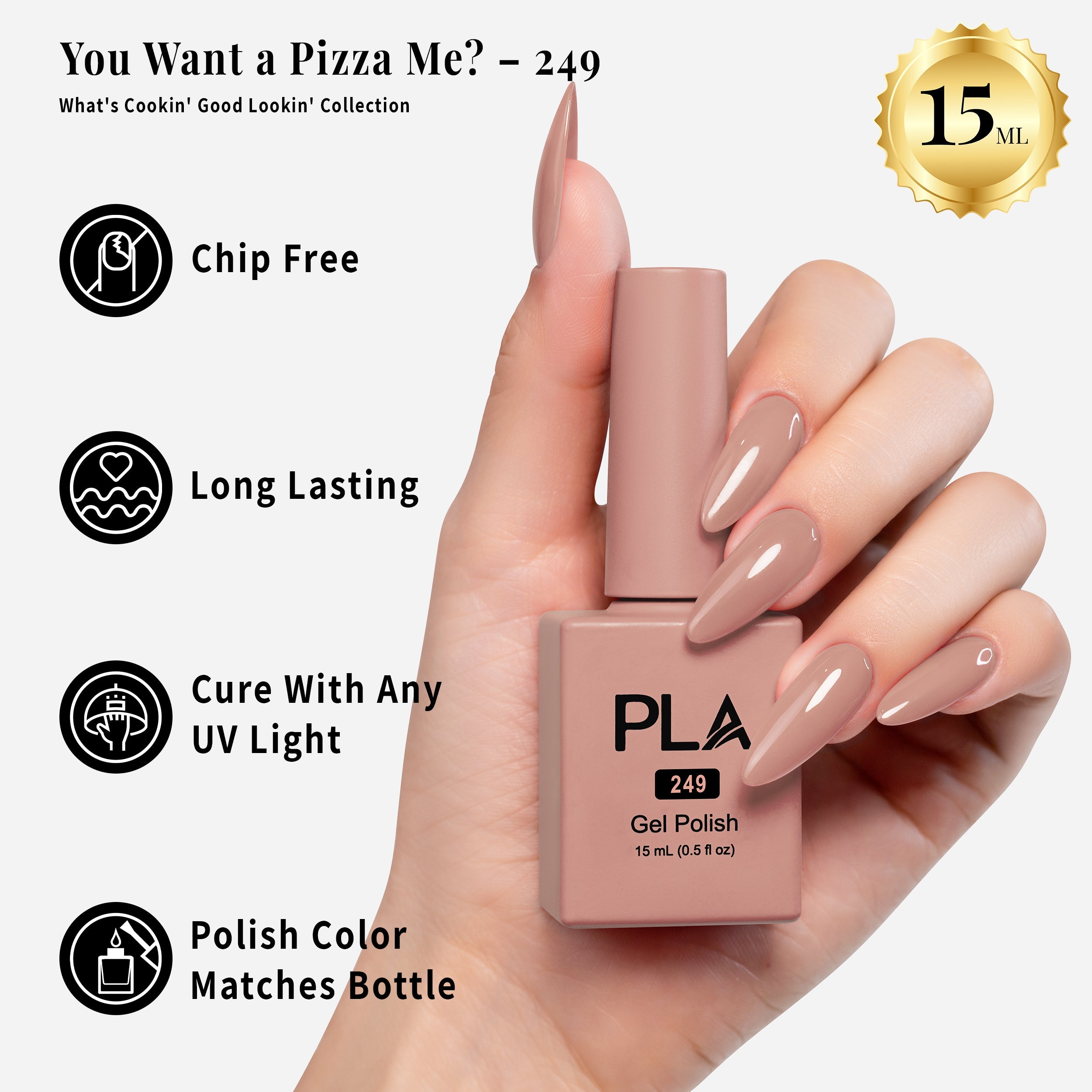 The What's Cookin' Good Lookin' Collection is full of neutral shades that will add a sophisticated, elegant touch to any look and can be used for a professional 3-step gel system. After applying the base coat, cure the gel polish under an LED lamp, finishing with the top coat.